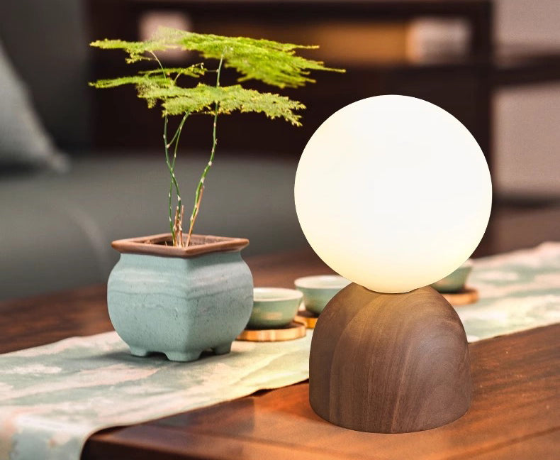 Modern & Contemporary Globe Table Lamp with Walnut Wood Stand