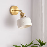 Coming in a straightforward white ceramic lampshade in a short cynlindrical shape, this art deco wall sconce can be an elegant decor for your hallway as well as a calming bedside lamp for your farmhouse bedroom.